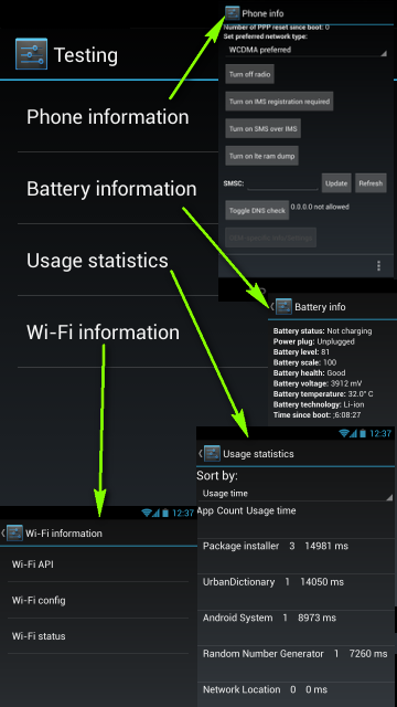 Most of the mobile manufacturers include a hidden service menu in their Android Devices. These menus allow users (or developers) to access some technical information and service personnel to access service details etc.